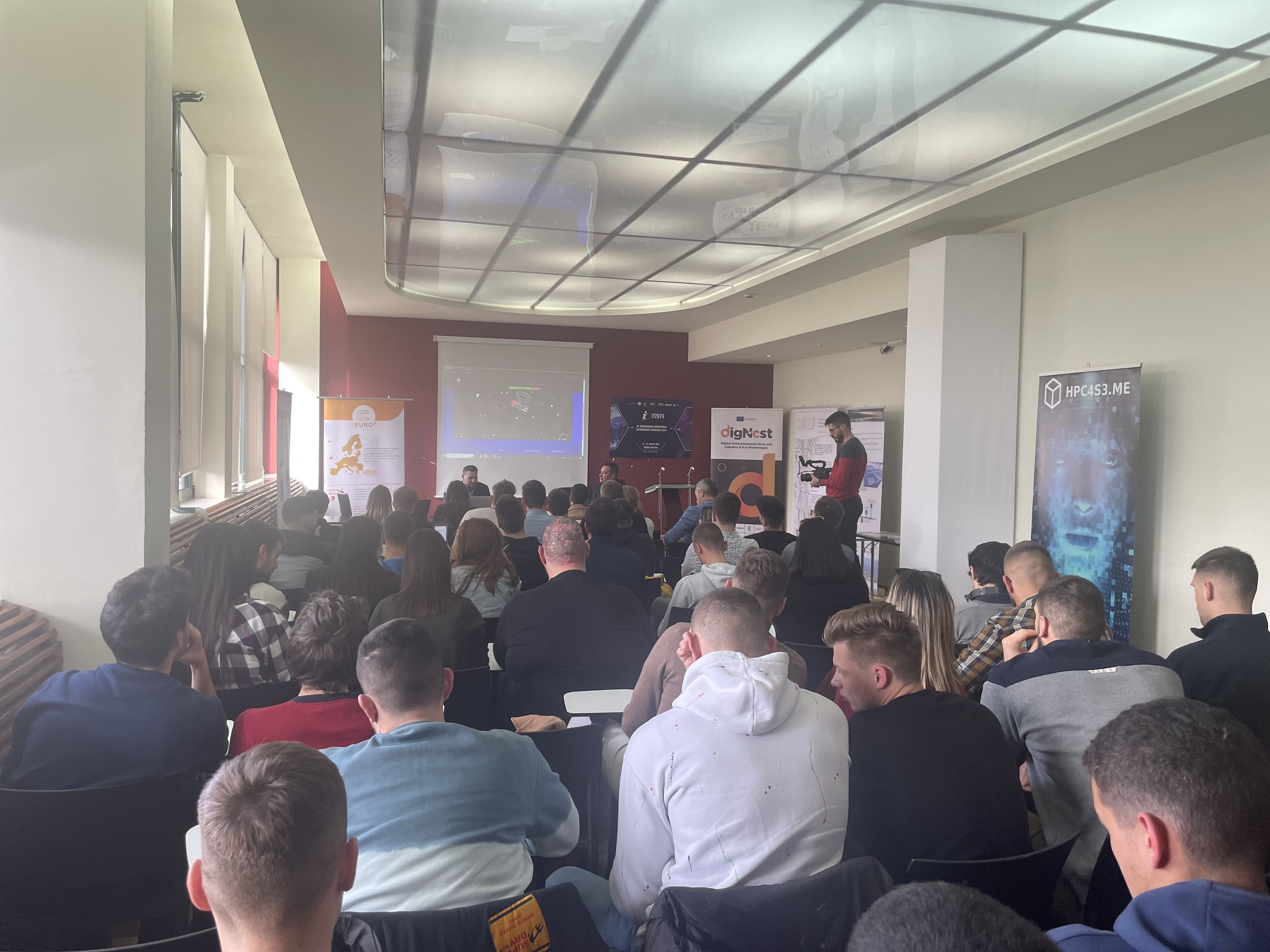 About 140 (in-person and online) representatives of the research, academic and business community participated in the training.On the second day of the XXVII scientific-professional conference, a training session was organized – application of supercomputers in industry and examples of good practices. The training was conducted as a part of the second phase of the EuroCC2 project - National Competence Centres within the framework of EuroHPC which is financed by the funds of the Joint Undertaking for European High-Performance Computing (EuroHPVC JU) and it continues with the promotion of supercomputer application at the national level by identifying relevant users and aligning their needs with available resources in the national centres of competencies for supercomputing. The project supports the development of innovative solutions by targeted participants in the private and public sector by providing support to interested end users in the use of HPC/HPDA/AI. The University of Donja Gorica (UDG) and the University of Montenegro (UoM) participate in the EuroCC2 project on behalf of the National Centre of Competencies for high-performance computing of Montenegro.